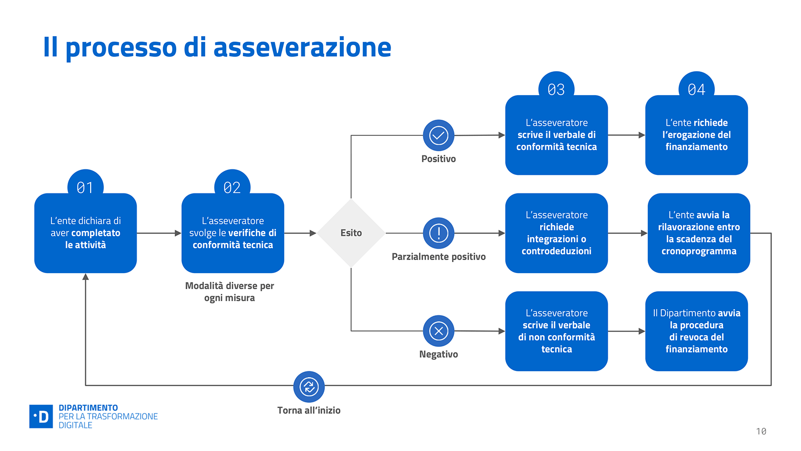 La fase finale prevede la verifica della corretta adesione al modello scuole del sito web, la qualità e la corrispondenza ad alcuni dei criteri di conformità della misura 1.4.1 del PNRR Esperienza del cittadino nei servizi pubblici digitali.